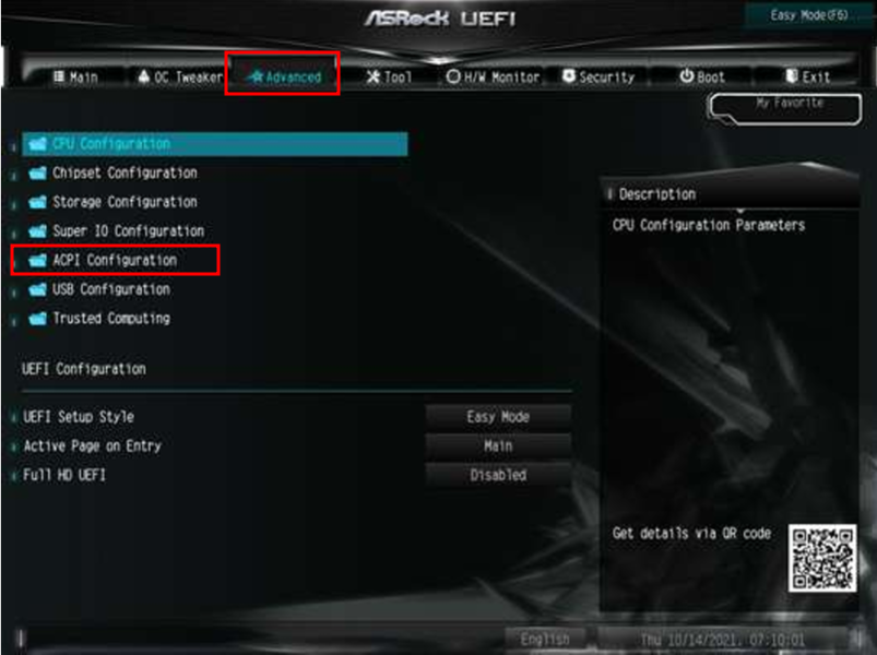 ACPI Configuration에서 하단에